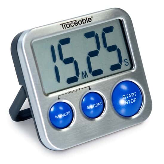 Built for durability and ease of use, this precision lab timer features a large, easy-to-read display and a robust, blue-steel casing for added protection. Use fast-forward function to quickly set the countdown time. Set any countdown time from 99 minutes, 59 seconds to 1 second with an accuracy of 0.01%. The automatic bounceback memory feature retains the last time setting, allowing for quick adjustments in ongoing experiments.