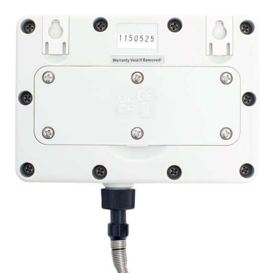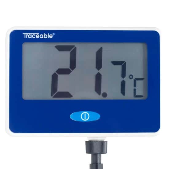 Designed for use in vats, pails, and drums, the thermometer comes with a 20″ long probe with a spring-loaded clamp for easy mounting and a 10-ft (3 m) long cable. The waterproof probe and cable along with an IP67-rated waterproof housing ensure reliable performance even in challenging environments. The extra-large LCD allows you to view readings from up to 70 feet away.