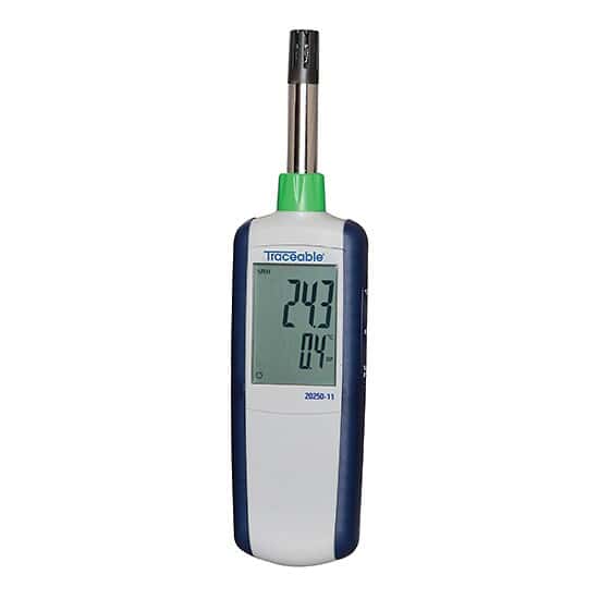 The Traceable handheld thermohygrometer provides accurate and reliable readings in an ergonomic design. Use it in HVAC, IAQ, laboratories, cleanrooms, warehouses, factories, and storage areas—anywhere you need to check the humidity and temperature levels. Plus, the NIST-traceable precalibration means you get reliable measurements right out of the box, saving you time and money!