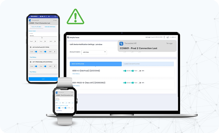 TraceableLIVE is a cloud-based remote monitoring platform that connects to your Traceable Wi-Fi-enabled instruments to provide real-time visibility, instant alerts, secure data logging, and automated compliance reporting.